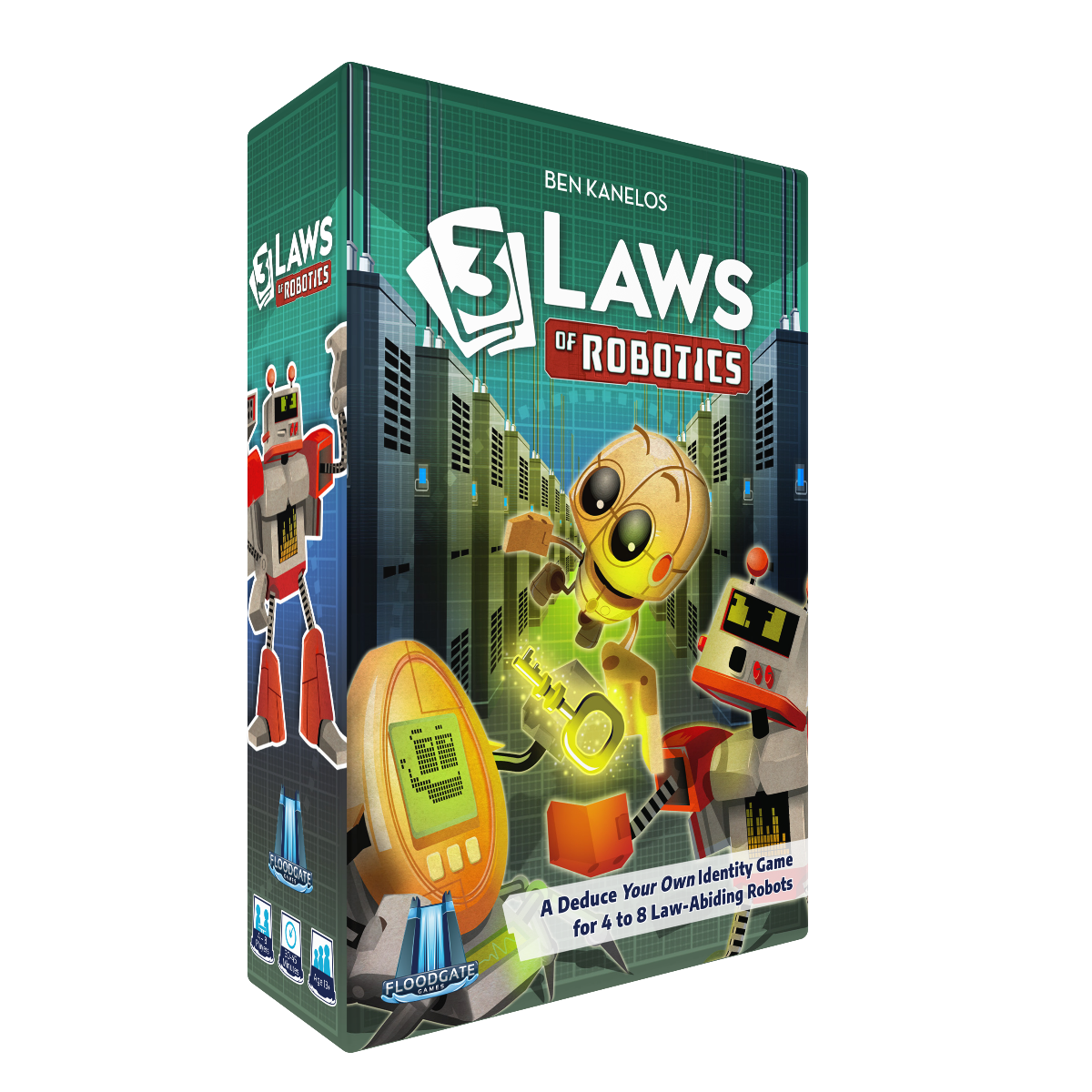 “Faction Check: ERROR” This is your first thought as you boot up in a holding cell surrounded by Robots and Androids. You don’t remember much, but you know you need to get out. Give your part of the keycodes to your faction leader, and you’ll be free -- but from which faction are you? And why does the giant screen in front of you say, “You Cannot Tell The Truth to A.I.’s”? 3 Laws is fast-moving deduction game for 4 to 10 players where you know everyone’s information (robotic faction and rank) except your own. Each round, you ask single question to try to figure out who is on your side, being sure to obey the new laws as they’re added. Ask the right questions to find your team to escape victorious in3 Laws of Robotics!
