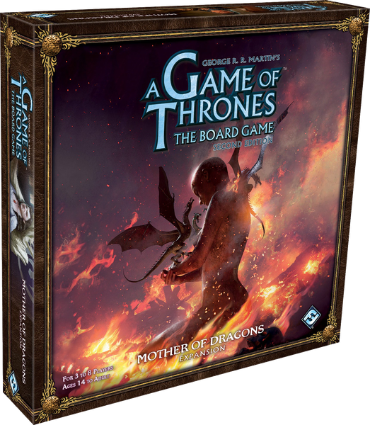 Cross the Narrow Sea with the Mother of Dragons expansion for A Game of Thrones: The Board Game! Clawing their way into power, this expansion includes a side board of the Free Cities of Essos and an overlay of the Eyrie, as well as new characters and mechanics to bring House Targaryen and House Arryn into the fray. As you make your claim to the Iron Throne, you can call other Houses to your cause with the new vassal mechanic, or even ask for aid from the Iron Bank of Braavos. But be cautious, for the Iron Bank will have its due, and if your campaign proves to be a poor investment, the money lenders' retribution will be swift.