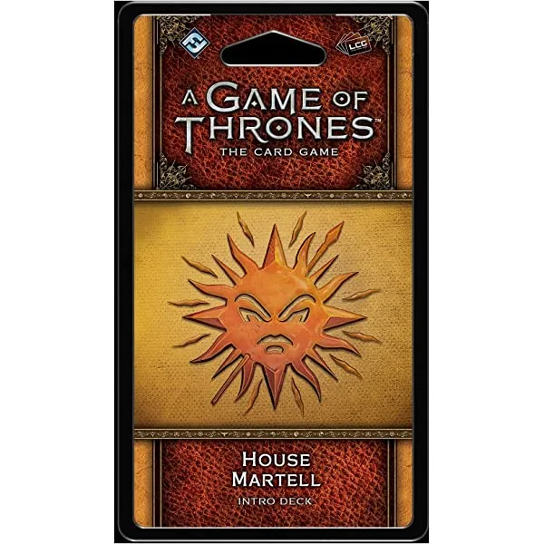 Join the battle for the Iron Throne with the House Martell Intro Deck for A Game of Thrones: The Card Game! This pre-constructed deck introduces you to the mechanics and key characters of House Martell to provide a stable foundation and highlight the faction’s unique features. The perfect entry point for players new to A Game of Thrones: The Card Game, the House Martell Intro Deck contains sixty-nine cards that offer every card you need to begin your battles right away, whether you are squaring off against other intro decks or custom decks built by other players. By manipulating challenge icons and playing the long game, you will remain unbowed, unbent, unbroken.