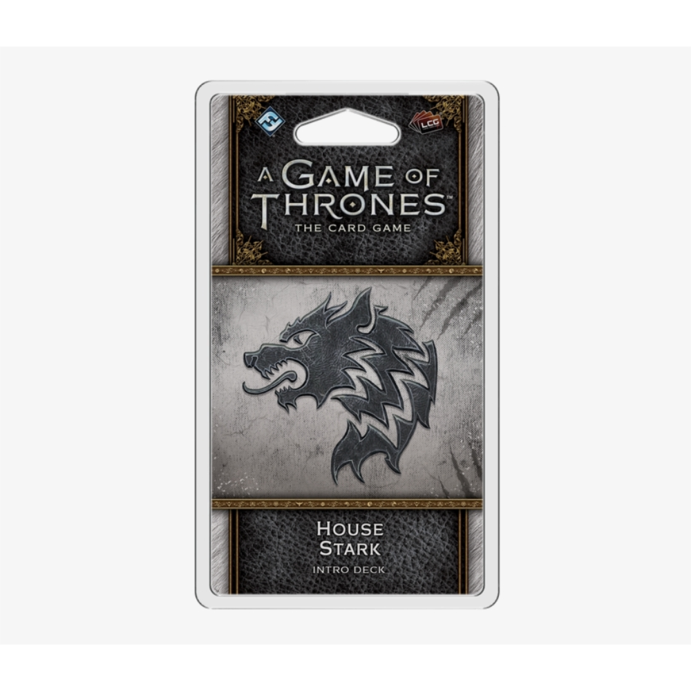Join the battle for the Iron Throne with the House Stark Intro Deck for A Game of Thrones: The Card Game! This pre-constructed deck introduces you to the mechanics and key characters of House Stark to provide a stable foundation and highlight the faction’s unique features. The perfect entry point for players new to A Game of Thrones: The Card Game, the House Stark Intro Deck contains sixty-nine cards that offer every card you need to begin your battles right away, whether you are squaring off against other intro decks or custom decks built by other players. By executing direct attacks and gaining strength through sacrifice, you will remind your enemies that winter is coming.