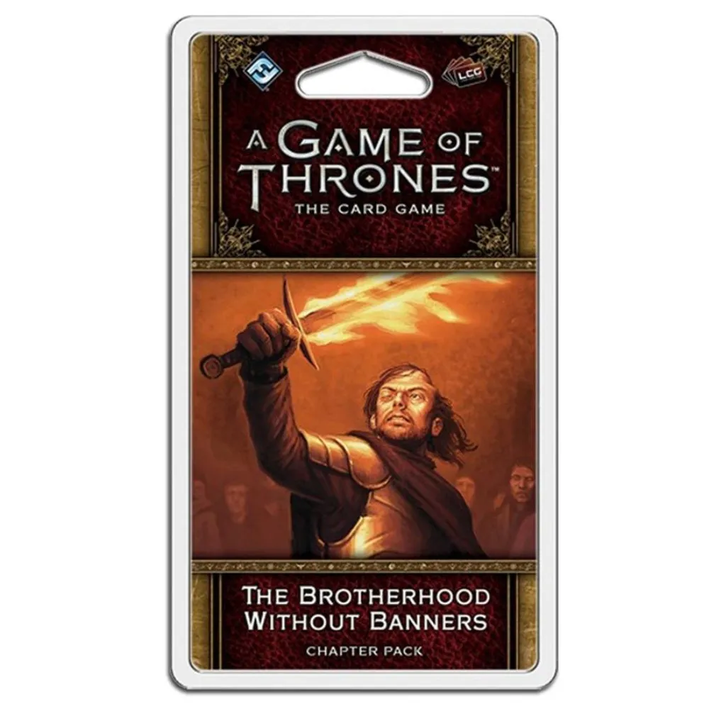 Take up arms with outlaws in The Brotherhood Without Banners, the sixth Chapter Pack of the Blood and Gold cycle for A Game of Thrones: The Card Game! As the cycle draws to a climactic conclusion, you’ll have the chance to see the themes of the cycle more fully realized, with new economy cards and new support for the bestow keyword across all eight factions. Whether you’re serving the Night’s Watch with Donal Noye or leading the brotherhood with Beric Dondarrion, this expansion has plenty to offer, including a brand-new agenda inviting you to join the brotherhood without banners.