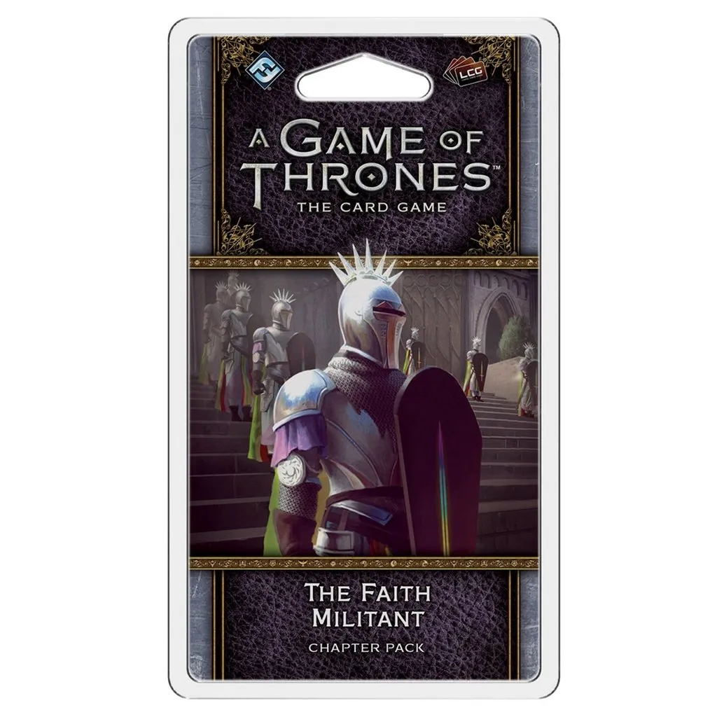 The Faith Militant is the fifth Chapter Pack in the "Flight of Crows" cycle for A Game of Thrones: The Card Game, and it introduces a special focus on the religions of Westeros, even when viewed alongside the other Chapter Packs of the cycle. Here, you'll find characters who've sworn fealty to The Seven, the Drowned God, and R'hllor, each serving their gods with the utmost fervor. With iconic characters like Arya Stark, Daenerys Targaryen, and Coldhands appearing in this expansion alongside a new agenda focused on The Seven, it's plain to see that the Seven Kingdoms will never be the same again.