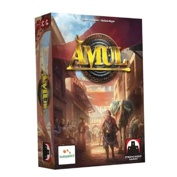 The city of Amul was one of the largest centers of international trade in ancient times and an important transit point on the Great Silk Road. The prosperity of this splendid city of merchants peaked after Arabian conquest in the 10th century and it was destroyed by the Mongols in 1220. Amul, originally announced as Silk Road, is a card game of bustling bazaars for up to eight aspiring merchants. In Amul, each player is a striving merchant, competing for wealth and success. The creative card drafting mechanism caters to swift and simultaneous gameplay, keeping all players constantly engaged. Draft cards from the market to collect goods and valuables, hire guards, assemble caravans, and make contracts with traders. Manage your hand effectively as only certain cards can be played to the table for scoring, while others must be in your hand for optimal end game scoring. Amul features fast and engaging gameplay, as well as beautiful artwork.