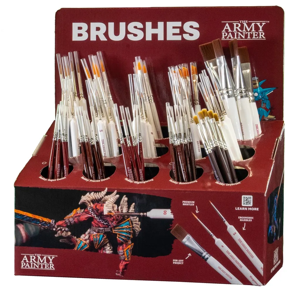 The Army Painter’s brush range and, keeps your shop organized while driving easy add-on brush sales.