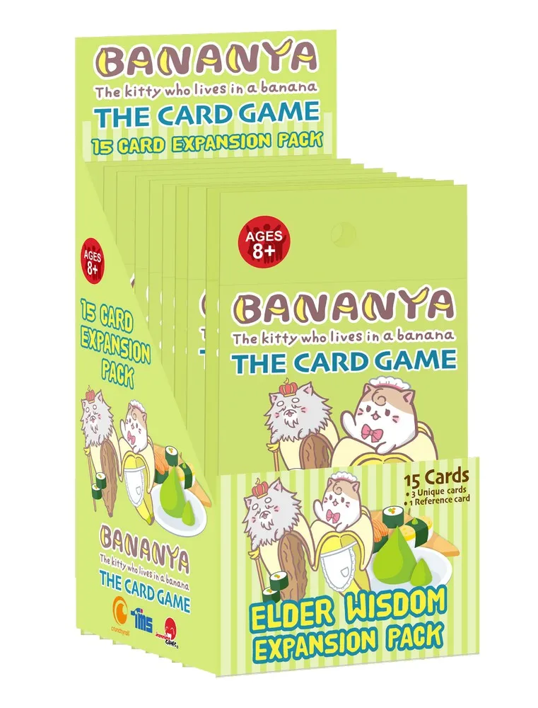 The Elder Wisdom Expansion contains 16 cards (Elder Bananya x 6, Maid Bananya x 6, Wasabi x 2, and a reference card) that you can swap into the base game for different play.