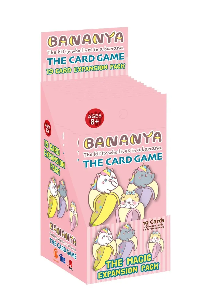 The Magic Expansion contains 19 cards (Rainbow Bananya x 6, Night Bananya x 6, Droopy-Eared Bananya x 6, and a reference card) that you can swap into the base game for different play.