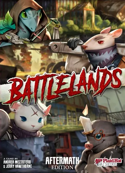 BattleLands is a fast and furious game of turf warfare for 3-5 players. Send your fighters to seize key locations, or recruit even fiercer warriors who can help you turn the tide! Use your faction's abilities to play dirty and keep your opponents guessing your next move! Set in the world of the upcoming Adventure Book game Aftermath, BattleLands: Aftermath Edition takes place in a post-apocalyptic land in which humans are extinct. Now the animals of the world try to survive by competing for territory, food, and precious technology.