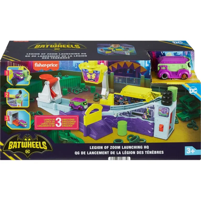 • Kids can collect additional 1:55 scale Batwheels vehicles and bring them to the Legion of Zoom HQ for more launching action! (Additional vehicles sold separately and subject to availability.)