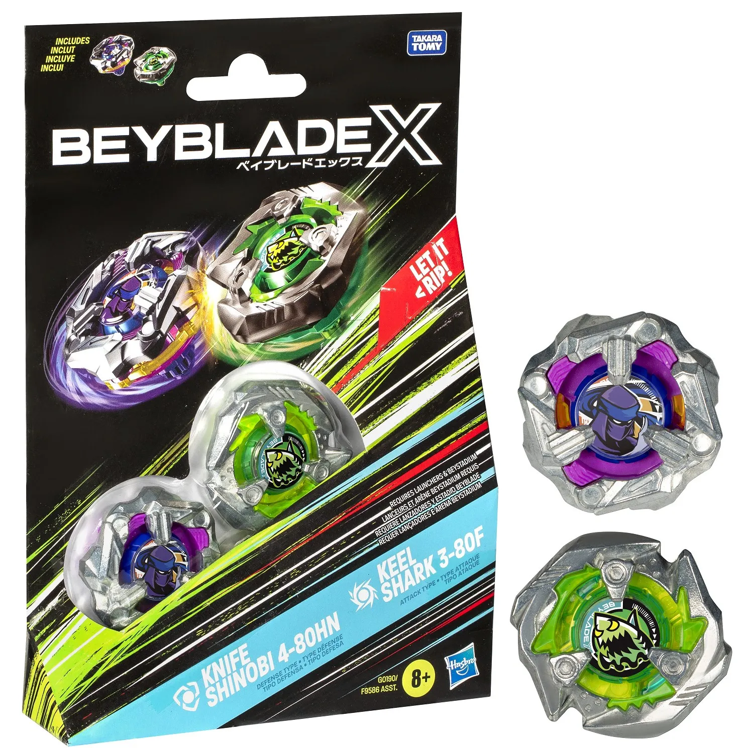 Experience the thrill of the next generation of Beyblade stadiums, launchers and tops: Beyblade X with the Dual Pack Set which includes 2 tops to enhance your collection (Beystadium and launchers required, sold separately). Launch right into battle or reconfigure the interchangeable blade, ratchet, and bit of this Dual Pack with those of other Beyblade X tops (sold separately) to create your own unsurpassable Bey. Beyblade X features the X-Celerator Gear System innovation to level-up your game. When the gear of a Beyblade X top engages the rail of the Beystadium arena, it can super-accelerate into an Xtreme Dash rocketing it around the stadium for crushing collisions and epic bursts. Bladers launch their tops into fierce clashes against their opponent's scoring points with each confrontation - first to score 4 points wins. Hasbro Beyblade toys with authentic Takara Tomy die-cast metal tops make great kids gifts for boys and girls ages 8 and up.
