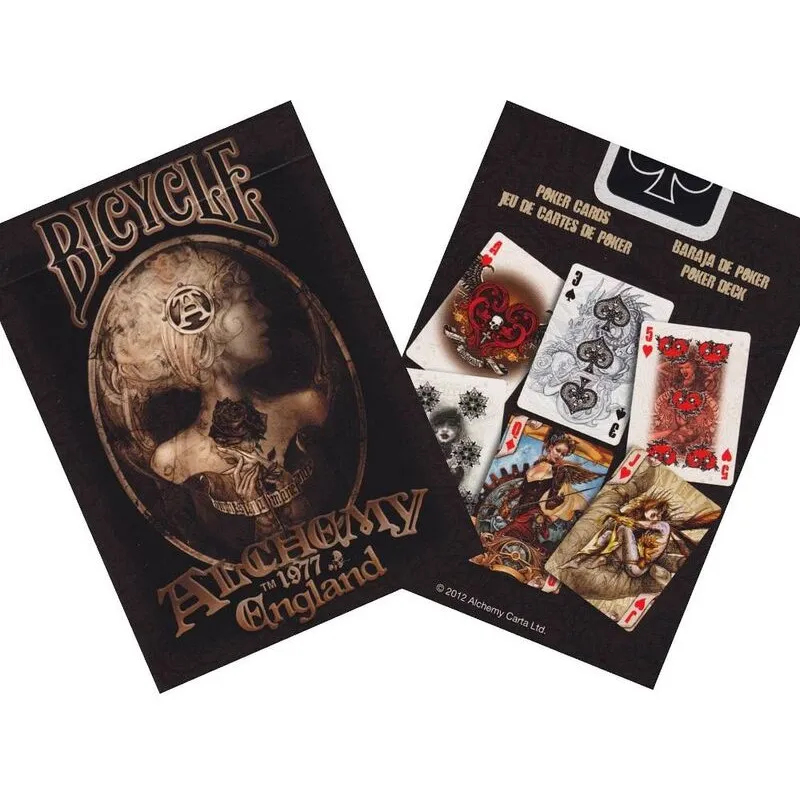 Alchemy1977, a company known for its alternative jewelry, games, clothing, and collectibles, designed every individual card for this unique deck. You’ll see skulls, fantasy and steampunk characters, intricately designed suit symbols, and more with every shuffle. The Alchemy England Deck features original artwork on the front and back of each card. The decks were printed in the USA at the United States Playing Card Company and printed on premium stock with a quality finish.