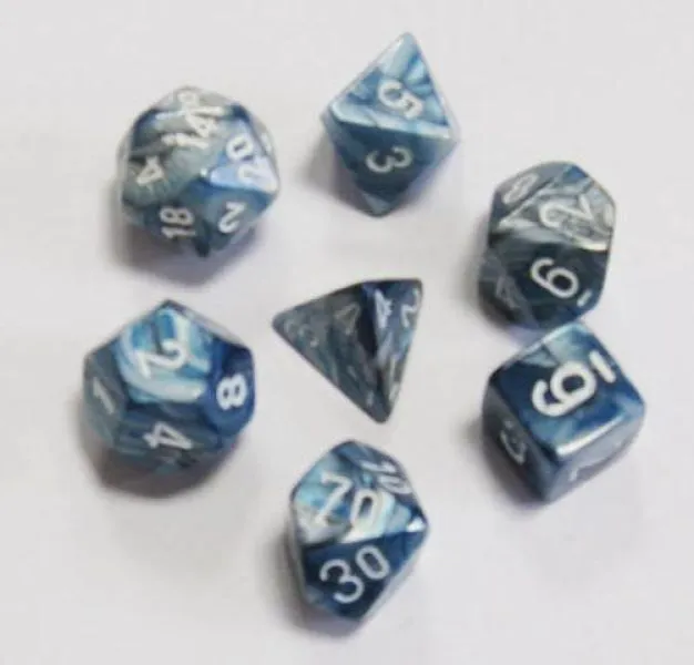 7-Die Set includes one of each D4, D6, D8, D10 0-10, D10 00-90, D12, D20.
