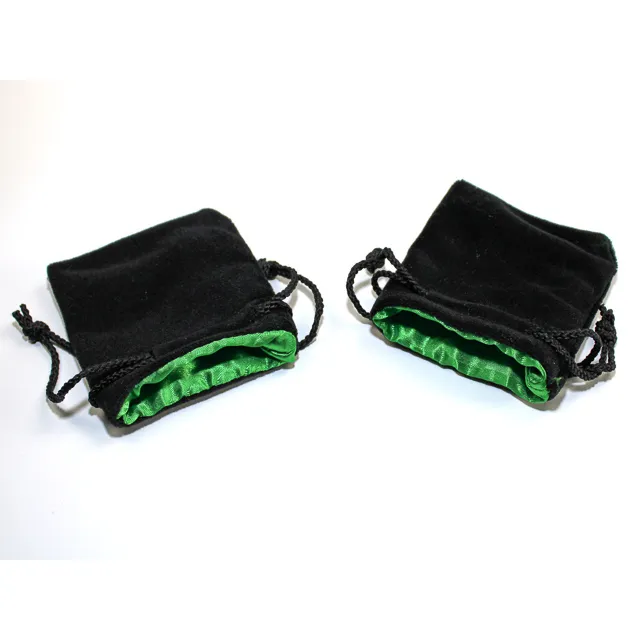3¾" x 4" Velvet Bag Green inside/Black outside.