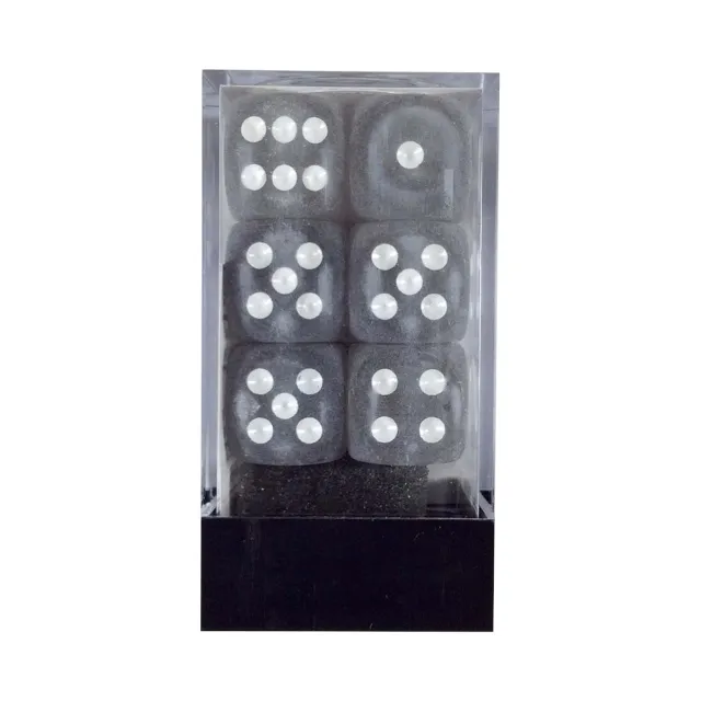 Contains 12 x 16mm 6-sided dice in a clear box.