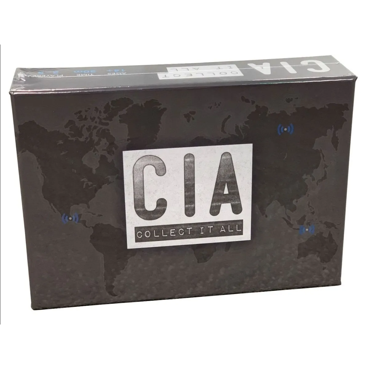 CIA: Collect It All is a competitive card game based on the CIA training game Collection Deck. Players take on the role of agents who are collecting intelligence and tackling security threats over multiple rounds.  Each round starts with ten crisis cards in the center of the table. Each crisis has aspects (Political, Military, Economic, Weapons), difficulty, and required number of Techniques. Players start each round with a hand of Intelligence Techniques and Reality Checks.  On their turn, a player can attempt to overcome a crisis by playing a number of Techniques that match the crisis's difficulty and aspects. Then, their opponents have a chance to play Reality Check cards that increase the difficulty of the crisis and the initial player can adapt by playing more cards from their hand. If they still have enough Techniques to overcome the crisis, they take crisis card and earn victory points equal to the number of Techniques used. The game ends when a player has accumulated 10 victory points.