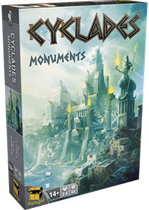 Attract more favors from the Gods with Cyclades: Monuments, a mini-expansion for Cyclades that consists of ten monument miniatures and ten associated monument cards. Now you can build temples dedicated to Zeus or Poseidon's glory, a great university to Athena, or a citadel from which Ares will watch down with each of these new buildings giving you a unique power to achieve victory!