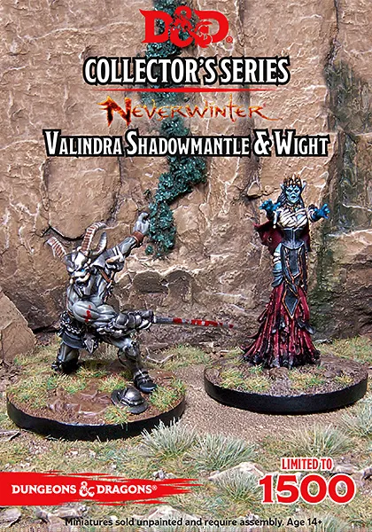 Valindra was once a beautiful moon elf wizard. After her death, the loss of her beauty drove her partially insane. Returning as a lich, she is the greatest threat facing Neverwinter, with the power to command Thayan necromancers, raise an army of the dead and control a Dracolich, an undead dragon of great destructive capabilities. Based on characters from the Neverwinter® MMO. Contains 2 unpainted, unassembled resin figures.