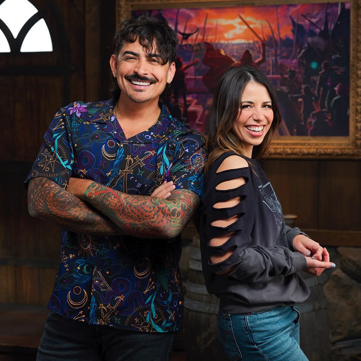 Long may the fashions of your wardrobe reign with the addition of the Beauty of Exandria„¢: Mollymauk Tealeaf Camp Shirt, made in homage to the extravagant bloodhunter himself. Inspired by his signature coat, the lightweight, unisex, button down shirt is patterned with a vibrantly colorful design representative of Mollymauk Tealeaf€™s flamboyant and enigmatic nature.