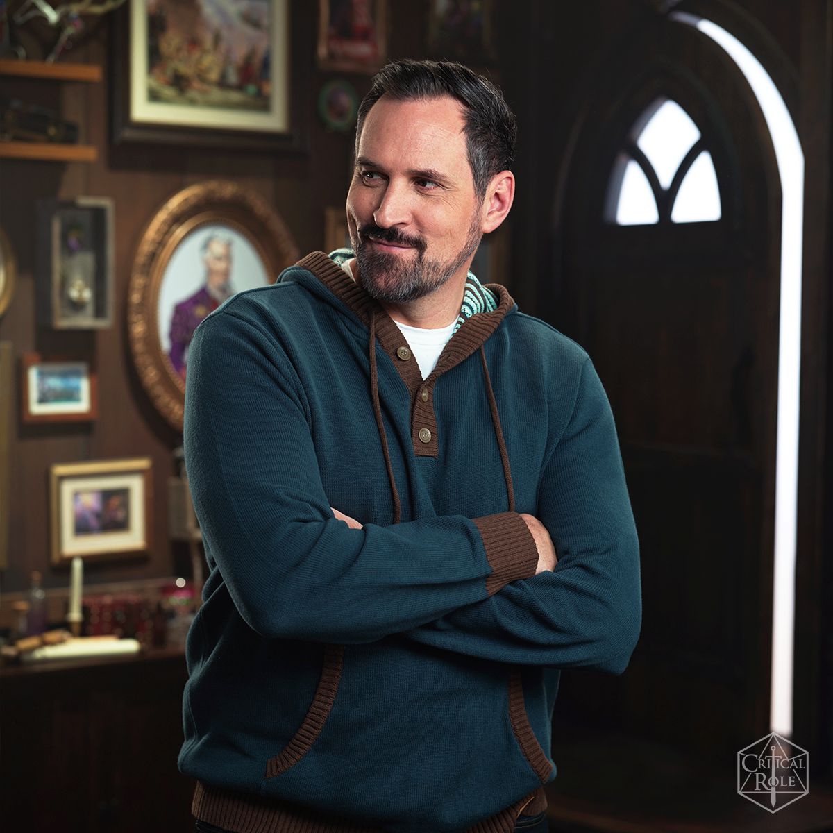 Inspired by the rustic woodworker, Chetney Pock O€™Pea, this casually cozy pullover hoodie features a large front kangaroo pocket and contrasting knit ribbed cuffs, hem, and collar that encloses with three wood textured buttons. The lining of the full hood has a knitted pattern inspired by Chetney€™s signature hat.