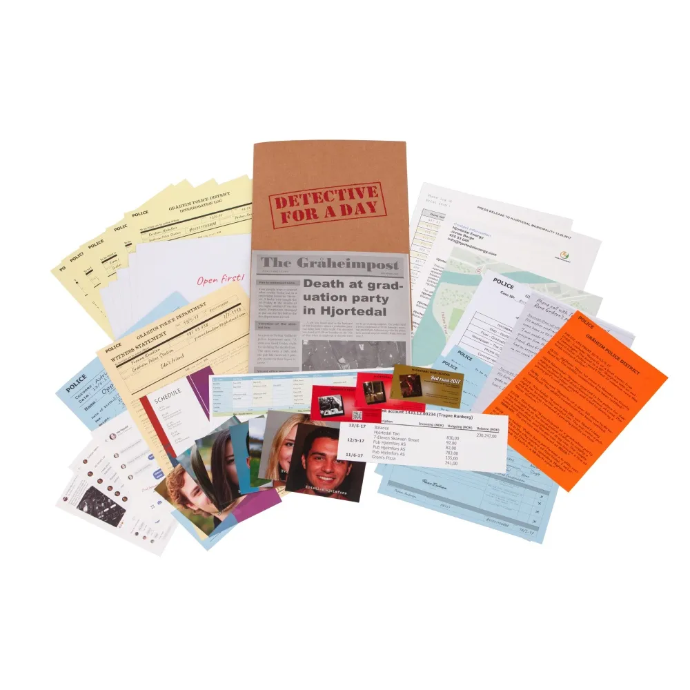 In Detective for a Day, you take on the role of a detective in a murder investigation. You will receive a folder with 40+ different pieces of evidence, alongside five envelopes to be opened at different times as you get deeper into the investigation. It is up to you how you resolve the matter. Search through the evidence and websites to find clues that can convict the killer!