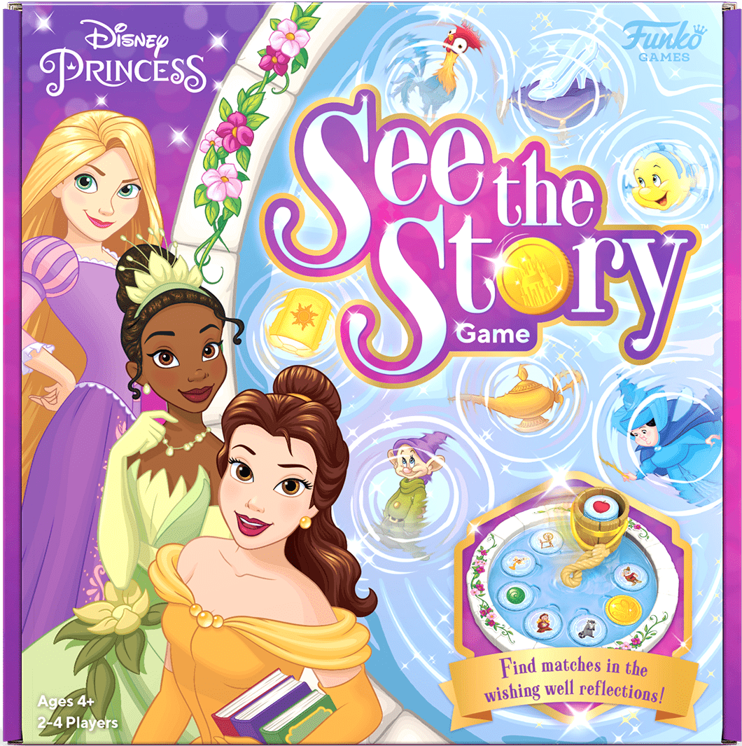 Look into the magical wishing well! You’ll see enchanting objects and memorable characters from your favorite Disney Princess stories. Race to find two pictures from the same story! Toss your token into the well and point out two pictures from the same Disney Princess story. If you’re right, collect one of the coins for your Disney Princess board! Be the first to collect 4 coins in a row to win!