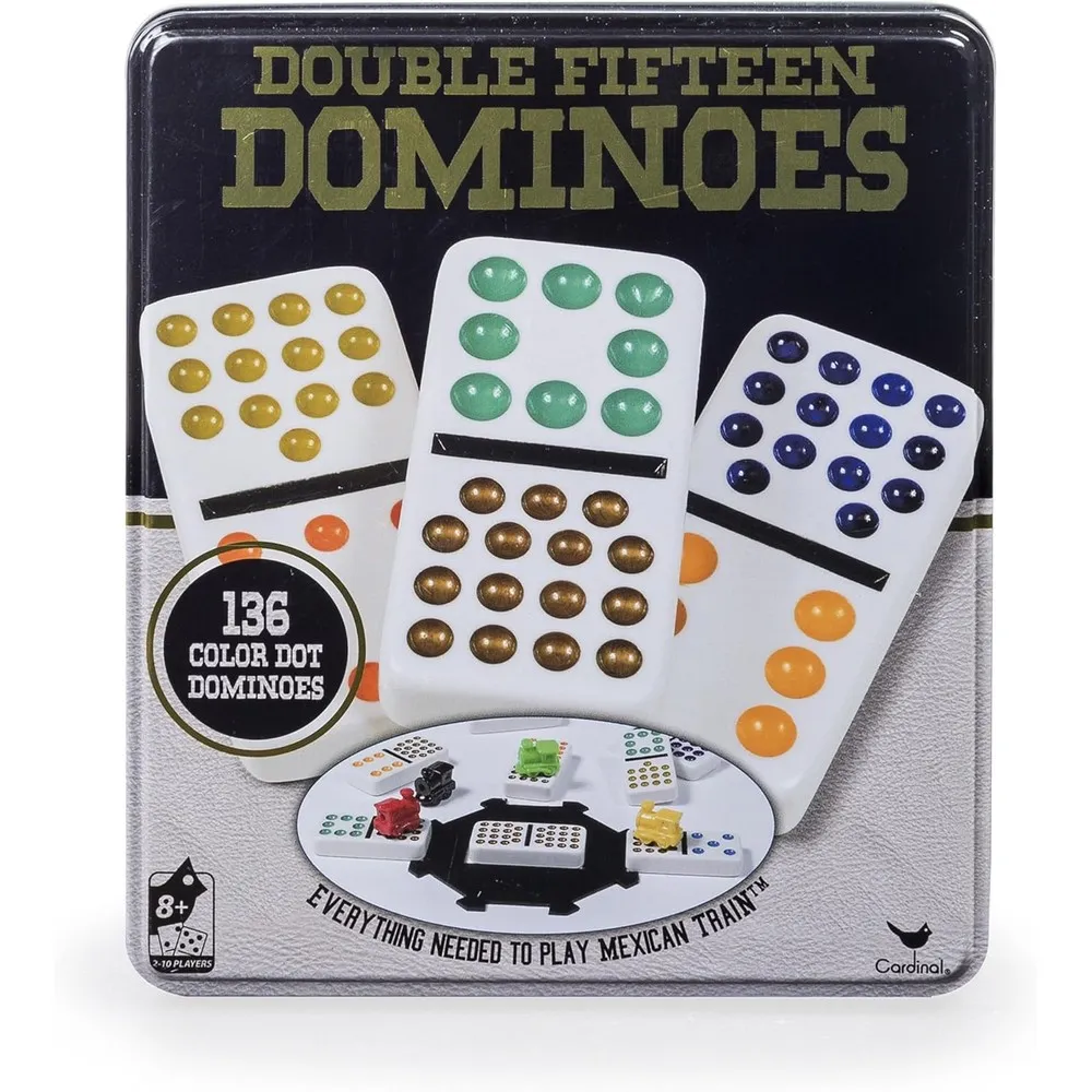 This is 136 large sized color dot dominoes with bright colored dots on the dominoes to make game play easier. It includes everything to play Mexican train and the starter piece enhances game play. Sturdy collectible tin is ideal for game storage with 136 jumbo sized color dot dominoes. Bright colored dots on the dominoes make game play easier.