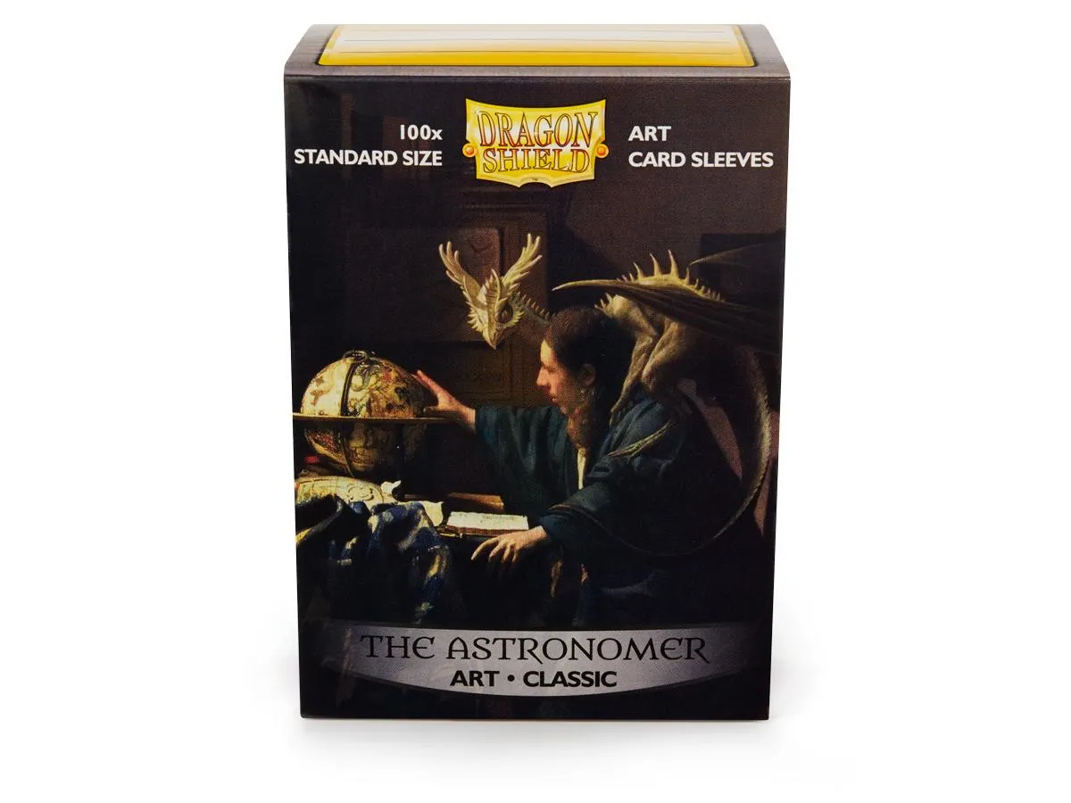 Clear front & ‘The Astronomer’ artwork by Johannes Vermeer. Dragonized by José Muñoz. Dragon Shield art sleeves are printed directly on a Dragon Shield sleeve. No layers, no peeling. Only beautiful artwork and a long-lasting protection. Classic is the original Dragon Shield sleeve. Smooth with a glossy back and unparalleled seal strength. 100 art sleeves per box. For cards measuring up to 63—88 mm (2½”x3½”). PVC-free polypropylene sleeves, no acid. Archival safe. 120 μ quality thickness. Sturdy cardboard box fits 75 cards including sleeves. Box lid has a label for your personal use. Designed for use with Magic the Gathering™, Pokémon™ and other card games.