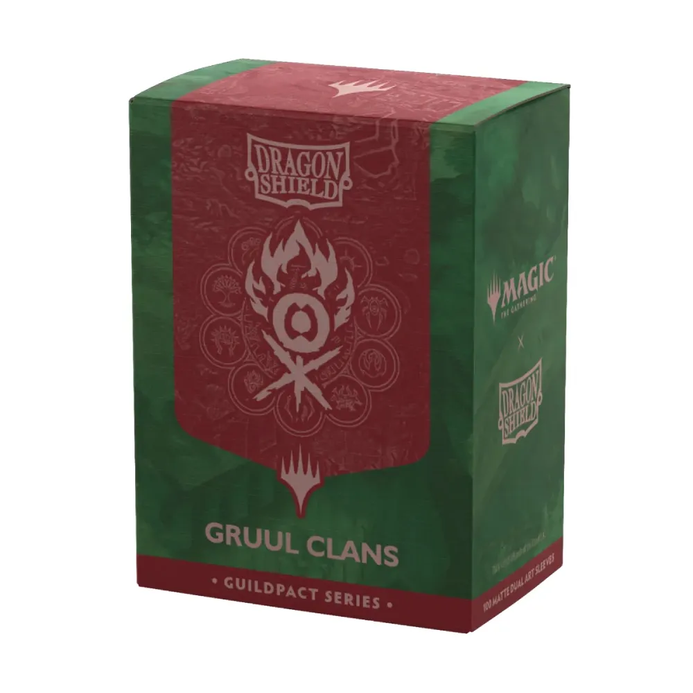 “Not Gruul? Then die!” Run wild with the Gruul Clans! Show your guild allegiance with the Magic x Dragon Shield Gruul Clans Matte Dual Art Sleeves.