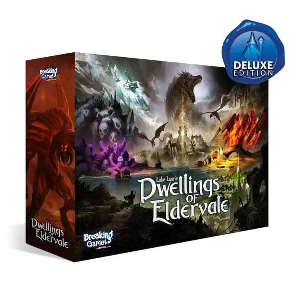Dwellings of Eldervale is an epic worker placement game set in a once lost magical world. Giant elemental monsters roam while dragons, wizards and warriors battle for dominance over 8 elemental realms. Players control unique factions seeking to adventure, battle, grow in power and ultimately dwell Eldervale, shaping it to their vision.