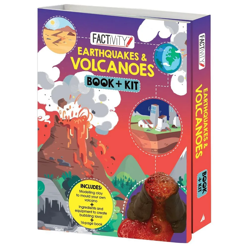Also included is a 16-page book, packed with facts and explanations on volcanic eruptions and earthquakes.