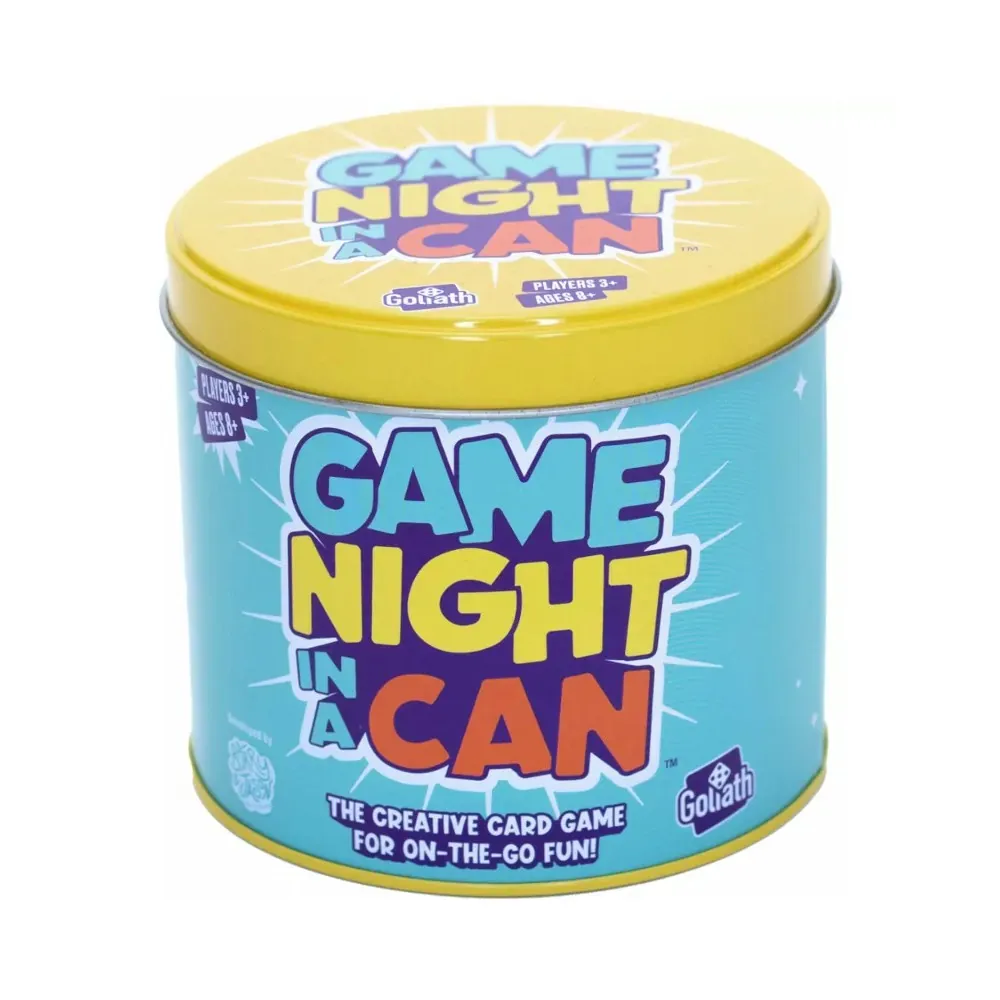 Get ready for a fun-filled evening with the Game Night In A Can from GOLIATH GAMES. This unique board game offers a full game night experience, packed with 30 hilarious and creative mini games that are perfect for all ages!