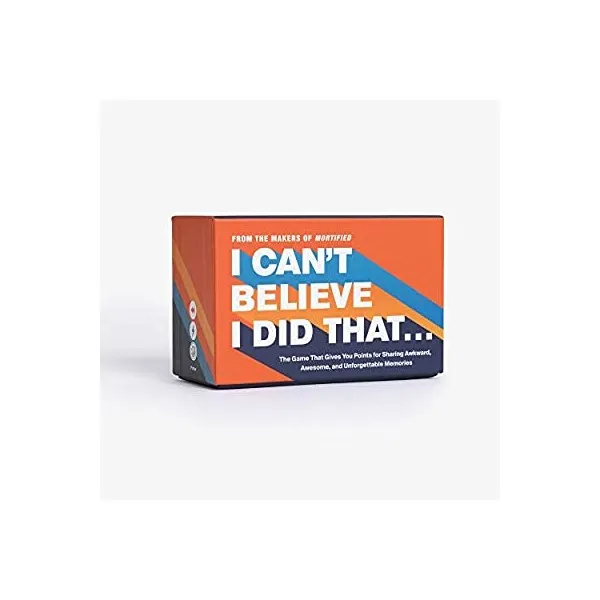 I Can't Believe I Did That... is a party game that is an exercise in both empathy and hilarity, bringing friends together to laugh (or cry!) at steamy high school hook-ups, questionable fashion choices, and sobbing at your first middle school dance. With conversation prompts that spark memories of your most heartwarming, confusing, and totally OMG-worthy moments, this game is perfect for busting through the awkwardness of getting-to-know-you at freshman orientation, book club, or even to pre-game a night on the town.