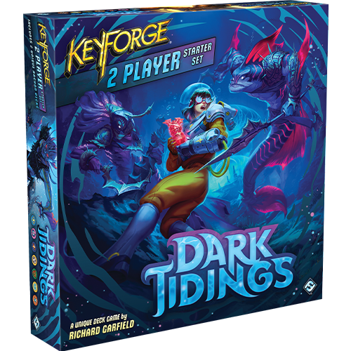 Each Dark Tidings Two-Player Starter Set contains two ready-to-play 36-card decks, bringing together three of the diverse Houses of the Crucible—each featuring their own mix of cards and unique from every other Archon Deck in existence. You’ll also find all of the tokens that you need for two players to start playing KeyForge!