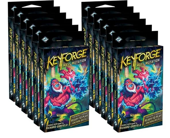 Change is coming to the Crucible with the Mass Mutation set for the world’s only Unique Deck Game, KeyForge. Over 200 brand-new cards now enter the cardpool in the game’s fourth set, and the mutative power of the dark æmber has changed many of them, creating strange and unknown versions of once-familiar creatures. As gigantic creatures stretching across two cards lumber their way into battle, and House Sanctum makes its triumphant return, there has never been a more impactful time to leap into the fast-paced duels of KeyForge. Each Mass Mutation Archon Deck contains a single, ready-to-play 36-card deck, bringing together three of the diverse Houses of the Crucible into a single deck—featuring its own mix of cards and unique from every other Archon Deck in existence.
