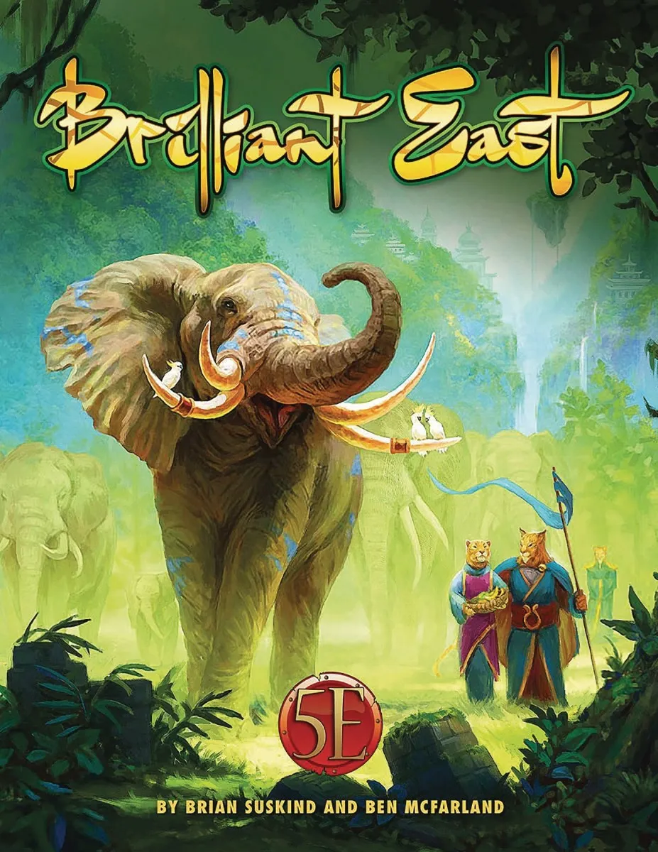 The region known as the Brilliant East is an immense and ancient land encompassing vast empires, wild unsettled plains, unsurpassed civilizations, and the ravaged battlefields of gods. Amazing sights greet travelers, from the impenetrable Wind Wall protecting Cathay against nomadic raiders, to the great flying citites of Sikkim, to the eerie purple sky above the shunned Plateau of Leng. Dreadful forces threaten the region. The worst of them are the ancient god Yig, who dwells with his serpentine followers amoung the flooded ruins of the Sunken Lands, and the Void maddened denizens of otherworldly Leng. Celestial dragons sor through the clouds and advise emperors, while irrepressible Monkey works his mischief among kings nad commoners alike.