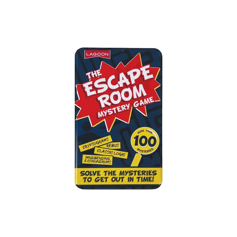 • This is the perfect travel escape room, with compact game board and cards for each category.