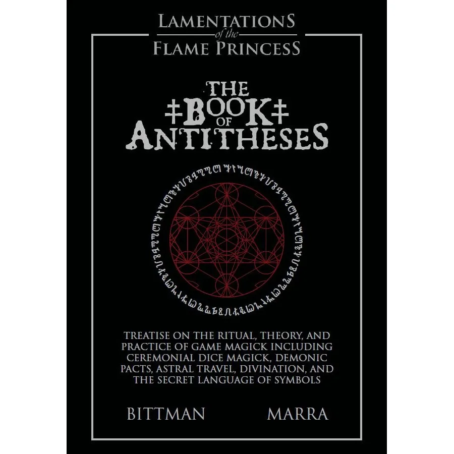 The time has come to reveal the truth behind role-playing games, their Satanic origin, and how to utilize that truth to manifest true power in the Physical Plane. THE BOOK OF ANTITHESES contains everything you need to initiate yourself into the left-hand path of role-playing. Learn the secrets of astral travel, telegraphy, divination, ceremonial dice magick, and the binding of demons. Succumb to the knowledge that demons live in us, all around us, and can be yoked like oxen to deliver WEALTH, SEX, and POWER. The second half of the book contains a full Lamentations of the Flame Princess adventure built using the magickal principals herein. We have forged the only team with the spiritual attainment and unadulterated will to unfetter your mind and unleash your potential: Written by Jobe Bittman, author of THE ONE WHO WATCHES FROM BELOW, TOWERS TWO, and THE MONSTER ALPHABET. In this book, Bittman taps his experience as a pataphysicist and master of the occult sciences to reveal the true magickal underpinnings of tabletop role-playing games. Illustrated by Benjamin Marra, the infamous and influential underground comic artist whose album cover for Wayfaring Strangers: Acid Nightmares garnered him a Grammy nomination. His comic books include NIGHT BUSINESS, AMERICAN BLOOD, and TERROR ASSAULTER: O.M.W.O.T. (One Man War On Terror). Foreword written by J.F. Martel, filmmaker and essayist on art, culture, religion, and philosophy. He also co-hosts the WEIRD STUDIES podcast, a series of conversations on the intersections of philosophy, the arts, and the weird. Martel is the author of RECLAIMING ART IN THE AGE OF ARTIFICE and REALITY IS ANALOG: PHILOSOPHIZING WITH STRANGER THINGS. Join us and attain ROCK-HARD OCCULT POWER now!