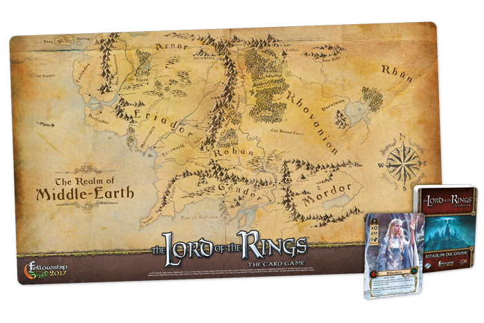 Each Fellowship Event Kit includes three copies of Assault on Dol Guldur, three Galadriel alternate art cards, and three gorgeous playmats featuring a map of Middle-earth.