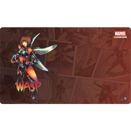This 24” x 12” slip-resistant game mat gives you plenty of space for your hero’s deck, identity card, upgrades, supports, and more, while showing off art drawn straight from the comics! Whether Wasp is tiny or giant, there’s plenty of room to showcase her and the rest of the cards in your deck on this game mat.