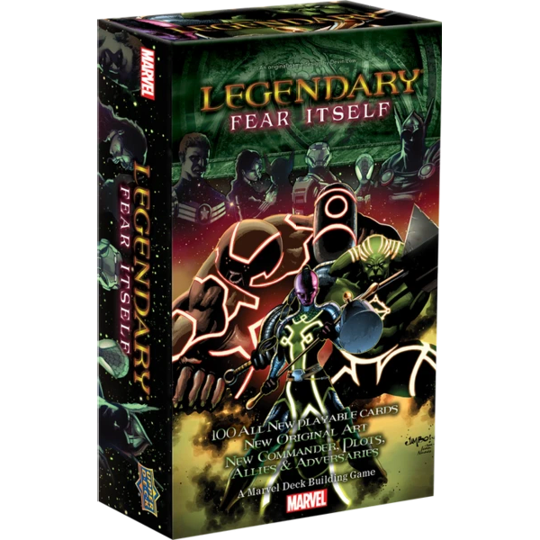 With the Legendary Villains: Fear Itself expansion for Legendary and Legendary: Villains, you can play through the "Fear Itself" storyline from Marvel Comics. This expansion consists of six new allies from The Worthy: Kuurth, Nul, Skirn, Nerkkod, Greithoth and Skadi; one new adversary group; one new commander; and three new plots. Players can work both with and against other players to defeat Iron Man in his Uru Enchanted Armor as he leads the forces of The Mighty while laying waste to planet Earth!