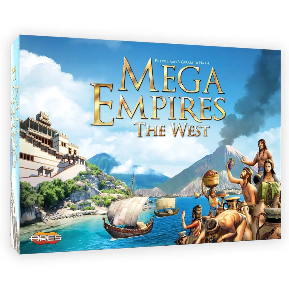 Mega Empires: The West is grand-strategy board game designed for 5 to 9 players, capturing the essence of ancient civilizations' development over 8000 years of history. As a player, you lead your civilization from the Atlantic Ocean to the Middle East, focusing on expanding your dominions, cultivating culture and technology, engaging in conflicts and trade, applying diplomacy, and facing various calamities. The primary objective of the game is to accumulate the most victory points through trading commodities and strategically developing advancements, symbolizing each civilization’s wealth and glory.