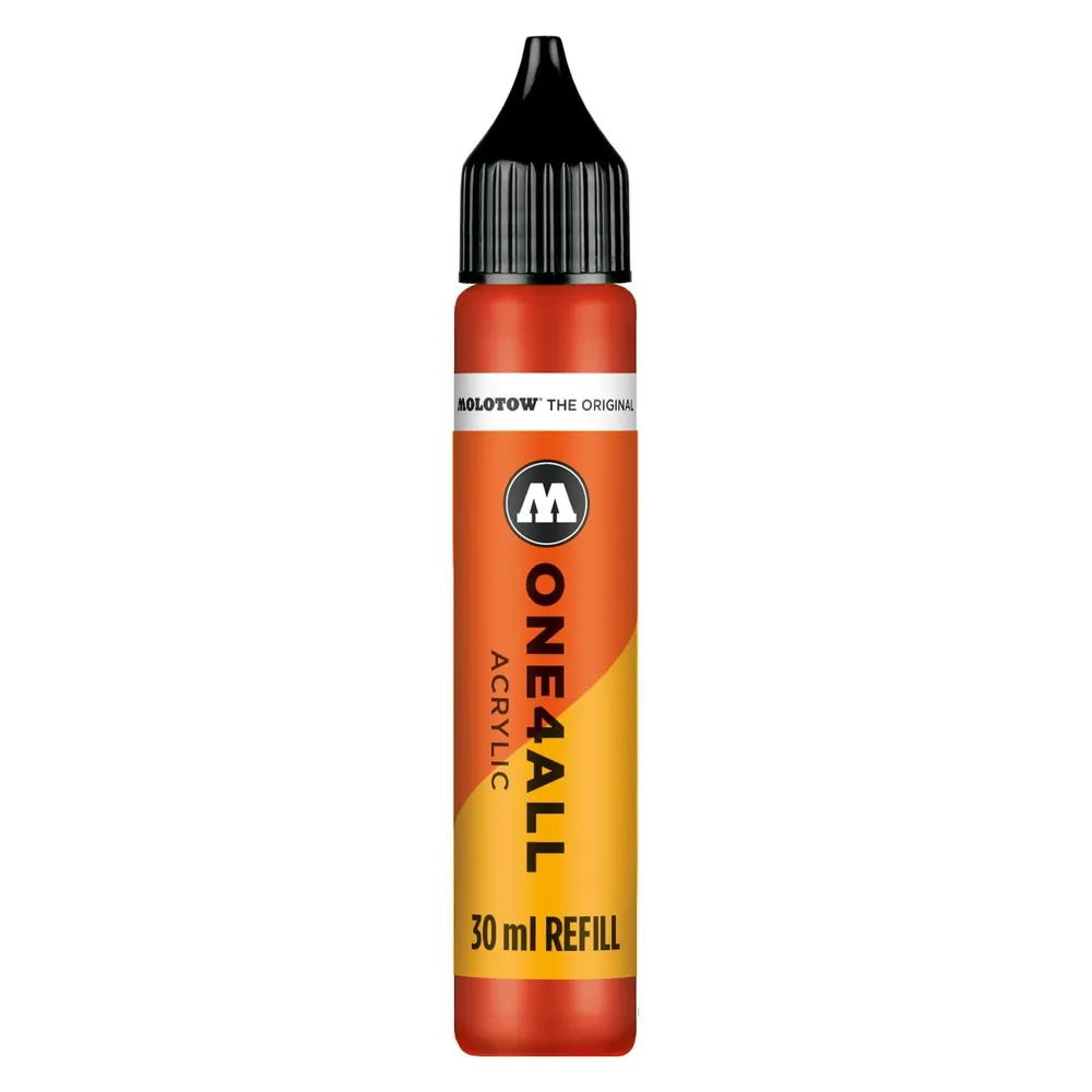 The Molotow One4All refill is a highly opaque, highly pigmented acrylic based hybrid paint.