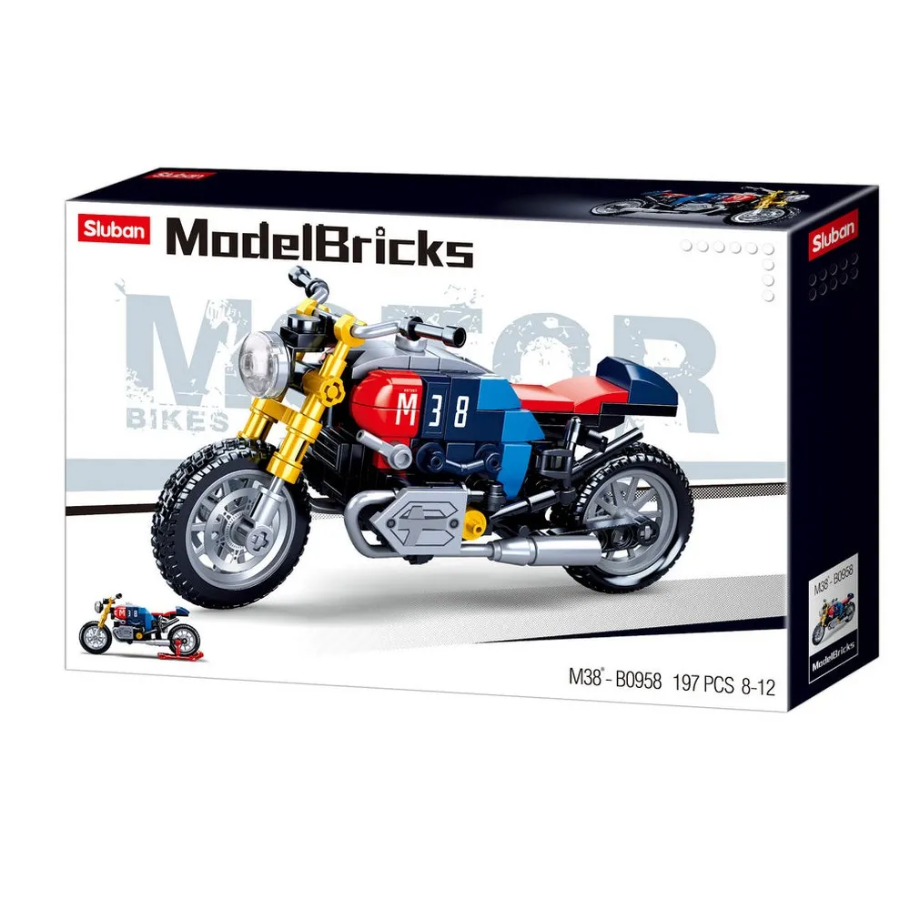 The M38-B0958 Sluban Cafe Racer Motorcycle is a beautiful building set from the Model Bricks series. Order this box of Sluban building blocks for hours of fun.