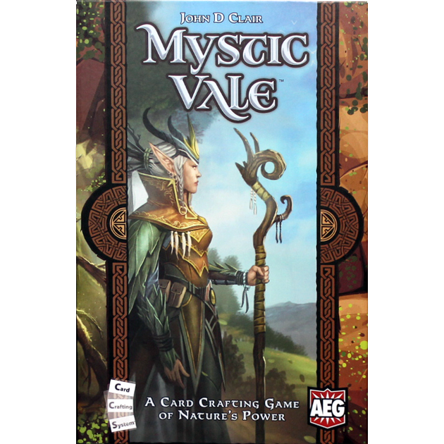 A curse has been placed on the Valley of Life. Hearing the spirits of nature cry out for aid, clans of druids have arrived, determined to use their blessings to heal the land and rescue the spirits. It will require courage and also caution, as the curse can overwhelm the careless who wield too much power. In Mystic Vale, 2 to 4 players take on the role of druidic clans trying to cleanse the curse upon the land. Each turn, you play cards into your field to gain powerful advancements and useful vale cards. Use your power wisely, or decay will end your turn prematurely. Score the most victory points to win the game! Mystic Vale uses the innovative "Card Crafting System", which lets you not only build your deck, but build the individual cards in your deck, customizing each card's abilities to exactly the strategy you want to follow.