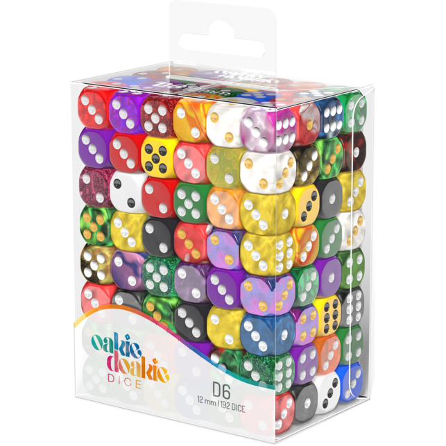 The D6 (12 mm) Retail Pack contains 192 x D6 (12 mm) dice. They come in the following styles: Speckled, Marble, Translucent, Solid and Gemidice.