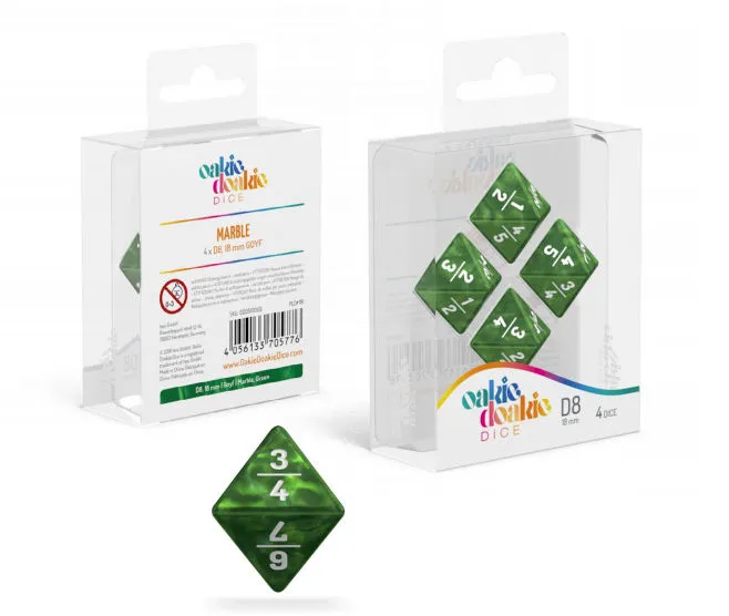 This set contains four high-quality GOYF dice (18 mm) which have eight sides with the following combinations: 1/2, 2/3, 3/4, 4/5, 5/6, 6/7, 7/8 and 8/9. Perfect for use in trading card games like Magic: The Gathering!