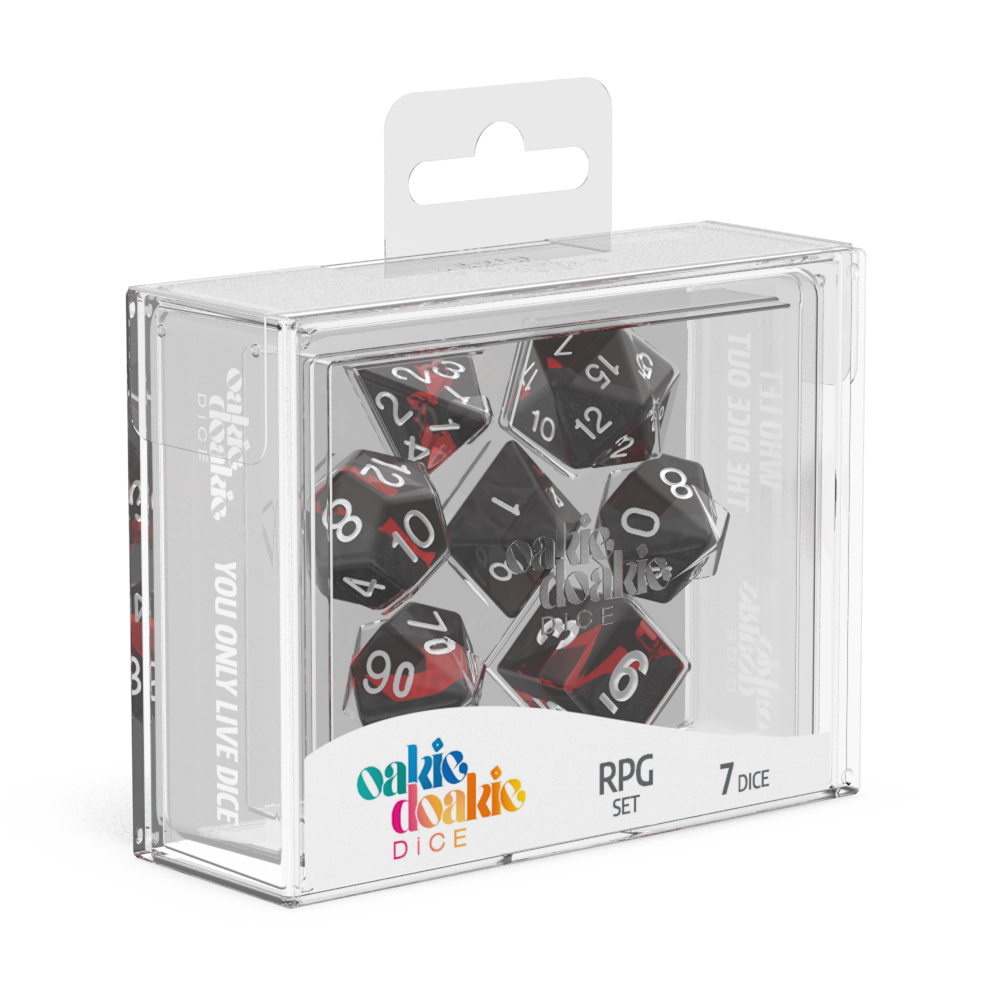 The best of both worlds: solid on the outside, translucent in between. These dice might remind you of a meandering river which flows on and on through the wilderness.