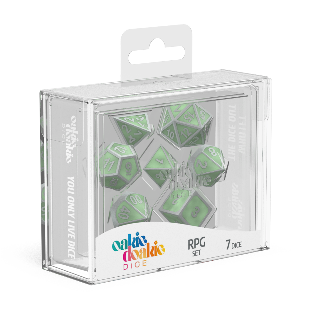 These dice have metal sides and numbers which you can also tell from their slightly greater weight. Another specialty are the sides which glow in the dark. Try it: Turn your lights off, and turn the dice on!