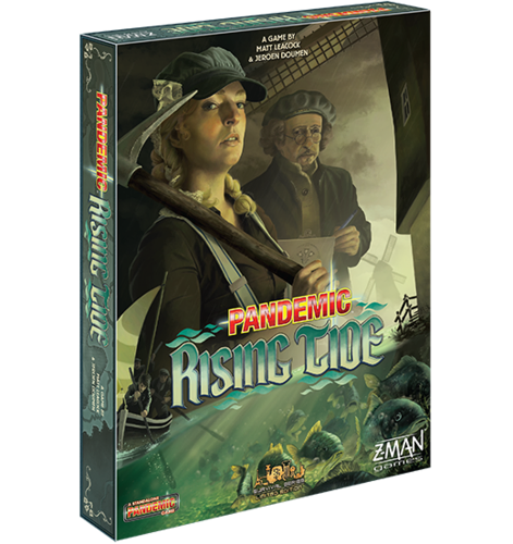 It is the dawn of the Industrial Age in the Netherlands. For centuries, the country has relied upon a series of dikes and wind-powered pumps to keep it safe from the constant threat of flooding from the North Sea. But this system is no longer enough. In Pandemic: Rising Tide, it is your goal to avert tragedy by constructing four modern hydraulic structures in strategic locations that will help you defend the country from being reclaimed by the ocean. Storms are brewing and the seas are restless. It will take all your guile to control the flow of water long enough to usher in the future of the Netherlands. It’s time to get to work. ... In Pandemic: Rising Tide, containing the water that threatens to consume the countryside is your greatest challenge. Water levels in a region are represented by cubes and, as the water containment systems currently in place begin to fail, more water cubes are added to the board. With water levels constantly on the rise, failure to maintain the containment system could quickly lead to water spilling across the board. To successfully build the four hydraulic structures needed to win a game of Pandemic: Rising Tide, then, you must first learn to predict and manipulate the flow of water. Failing to maintain safe water levels throughout the country can bring you perilously close to failing your mission. Fortunately, water can be corralled by a strategically placed dike or slowed by pumping water out of a region. Correctly identifying and intervening in at-risk areas can get you one step closer to victory.