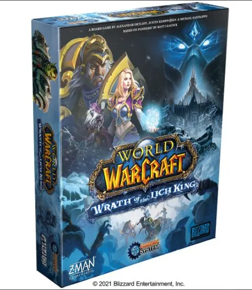 In this epic adventure from the World of Warcraft® universe, players will journey to the frozen continent of Northrend to face the armies of the Lich King. This Pandemic System game showcases familiar mechanics and gameplay, now tweaked to embrace the setting of the Wrath of the Lich King. Forts, temples, battlegrounds, and more populate the game board as you and your fellow heroes journey across the cold landscape. Along the way, you’ll set up strongholds, complete quests, and do battle with legions of undead.