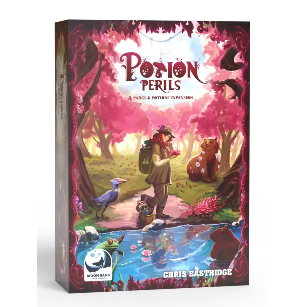 Potion Perils is a strategic expansion that requires the base game, Parks & Potions. In this expansion, players choose specific Time of Day dice to roll, which determine the potions available during those hours. New challenges, such as viral infections and spore outbreaks, create competitive obstacles that players must navigate each round.